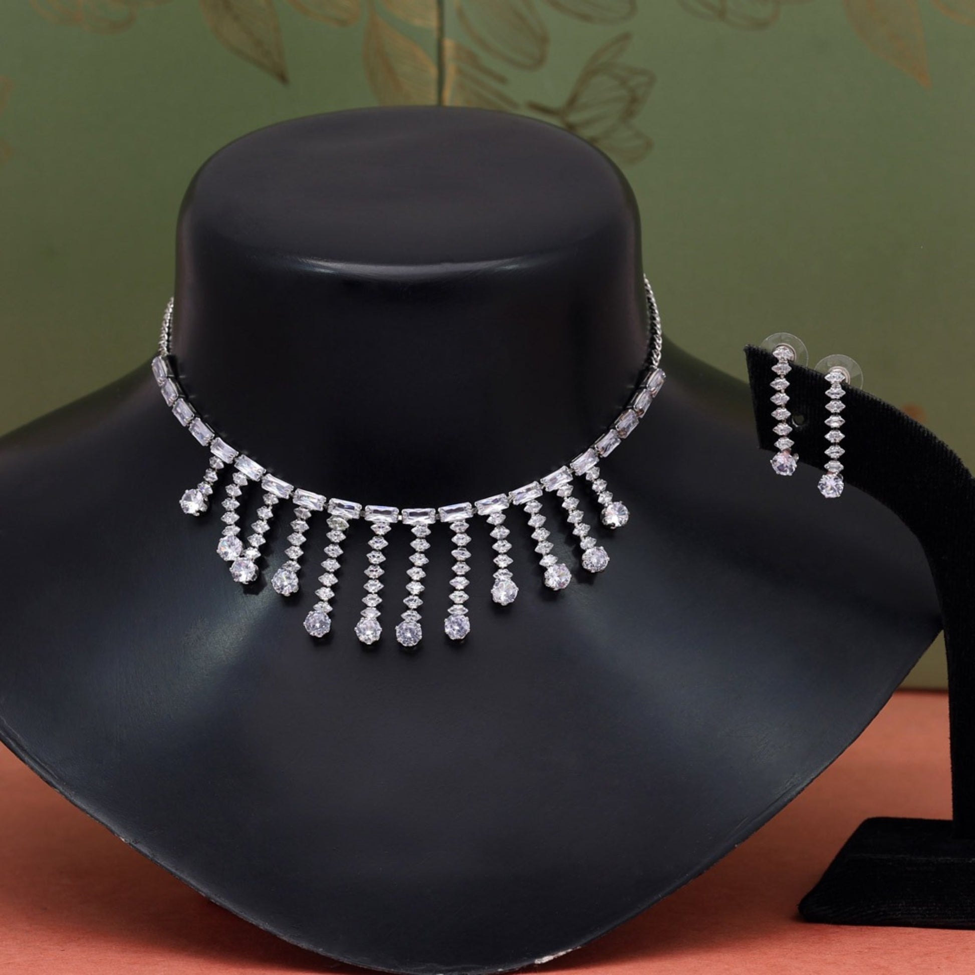 This stunning set features delicate silver tones completed with sparkling stones, adding a touch of glamor to any occasion. Versatile for daily wear or special occasions, it complements any outfit. Ensure longevity by following care instructions. A stylish addition to any jewellery/jewelry collection.