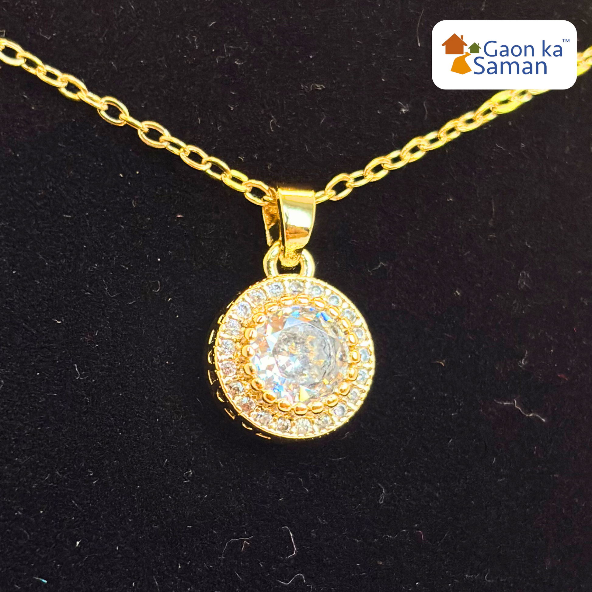 Classic Solitaire Gold Plated Sterling Silver Pendant With Chain