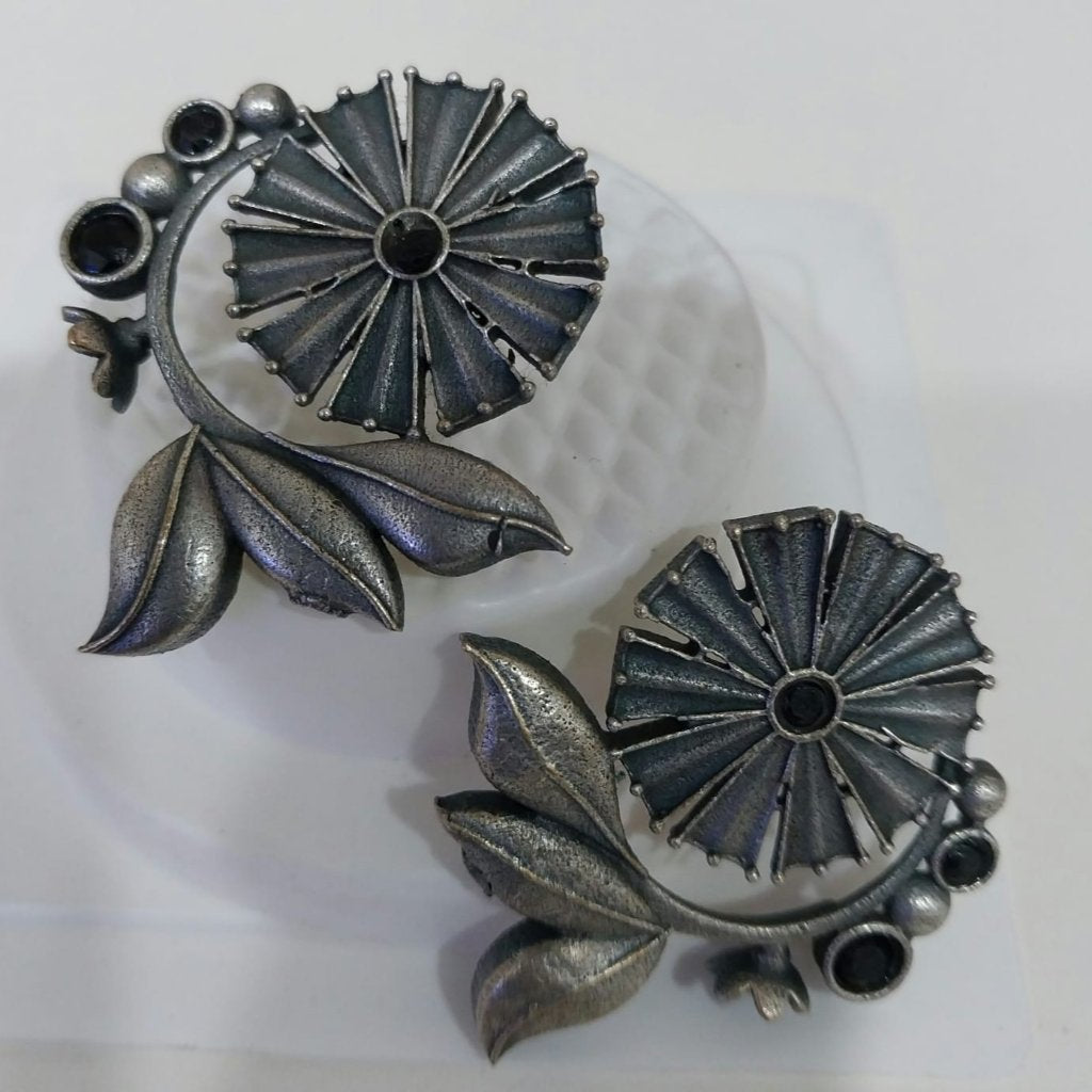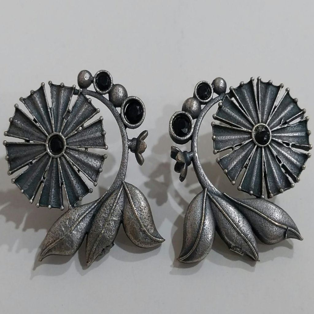 These small floral view earrings feature black pearls and a tri-leaf unique design, perfect for enhancing your style at festivals, functions, parties, and weddings for girls & women.
