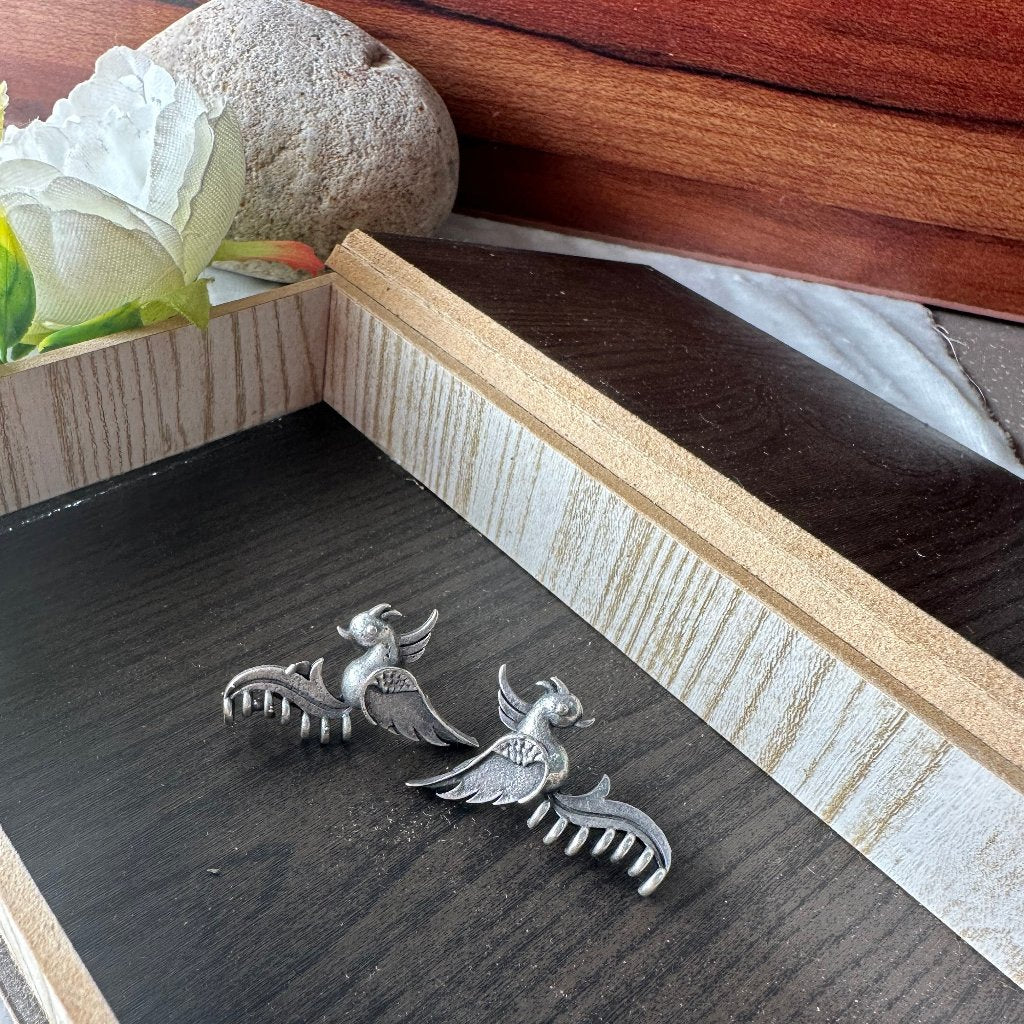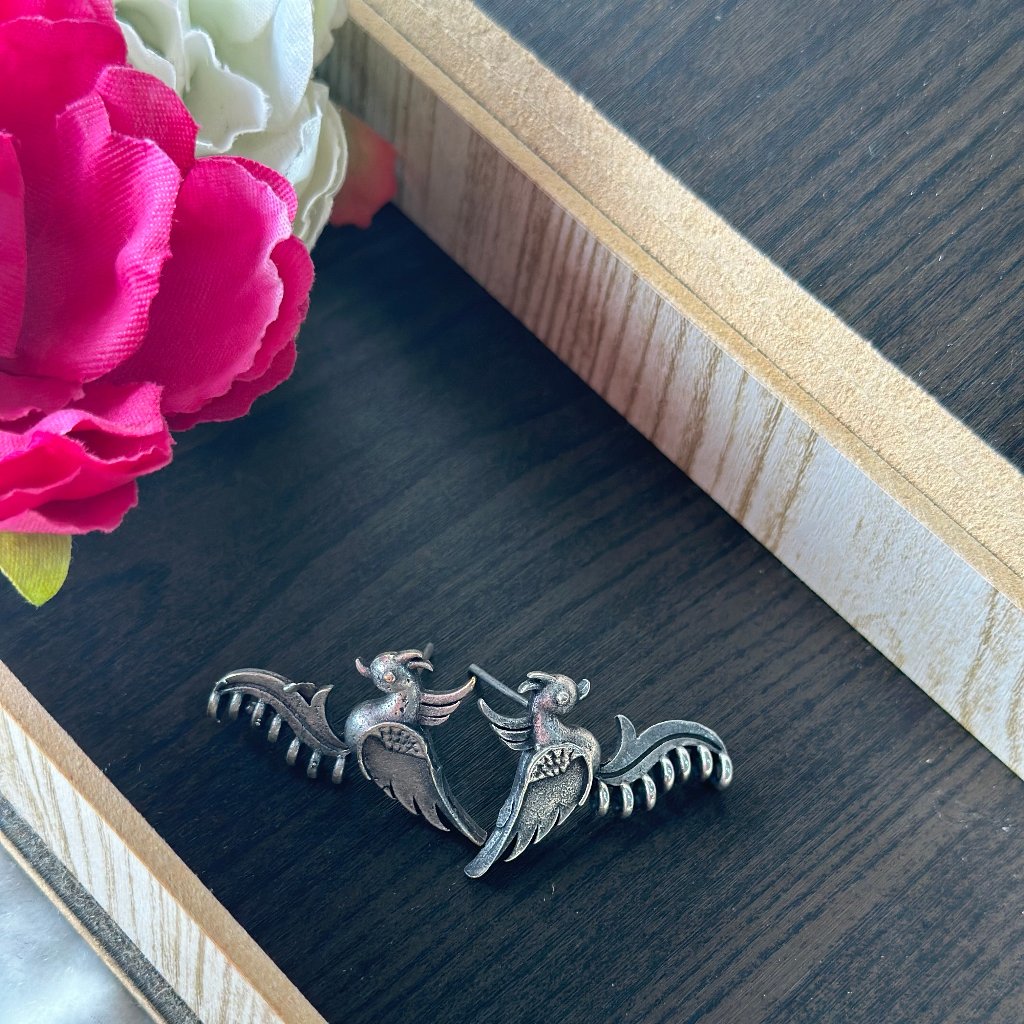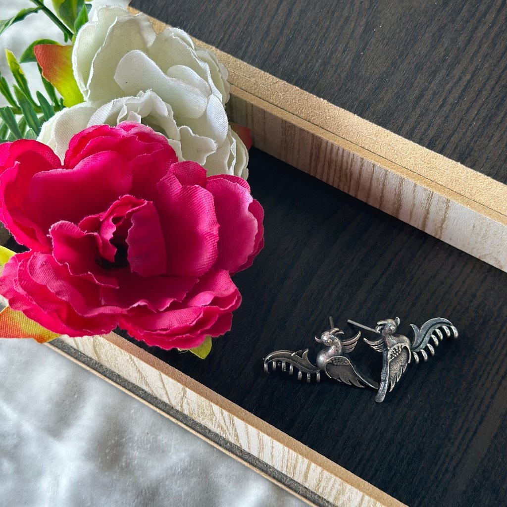 Introducing elegant flying pigeon silver oxidized earrings, showcasing intricate designs perfect for adding charm to your outfit at ease. Occasions like festivals, functions, parties, weddings perfect for girls & women.