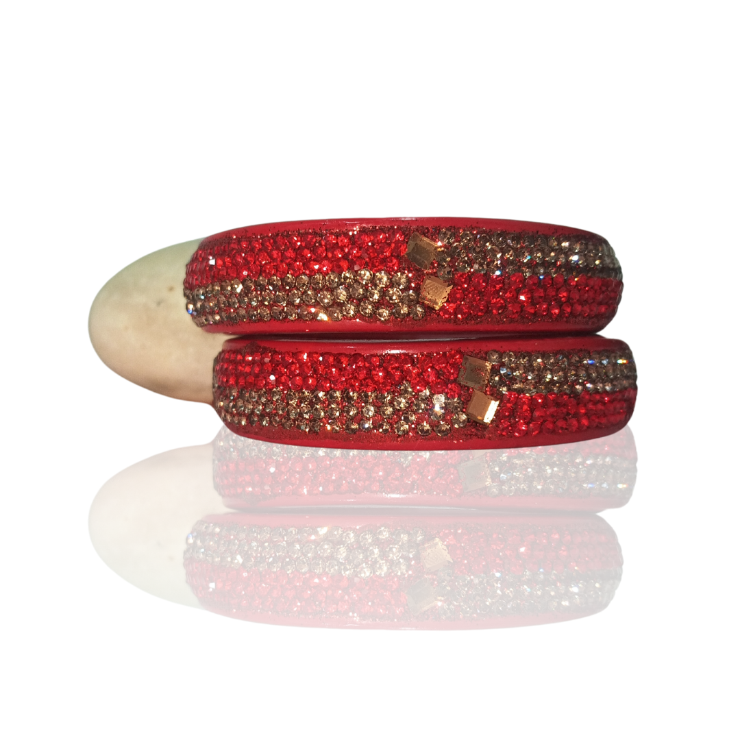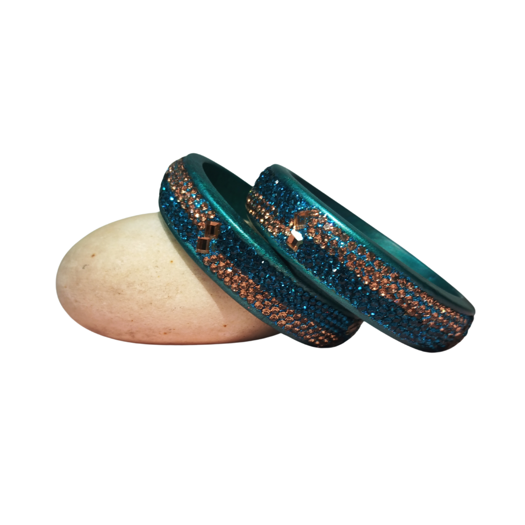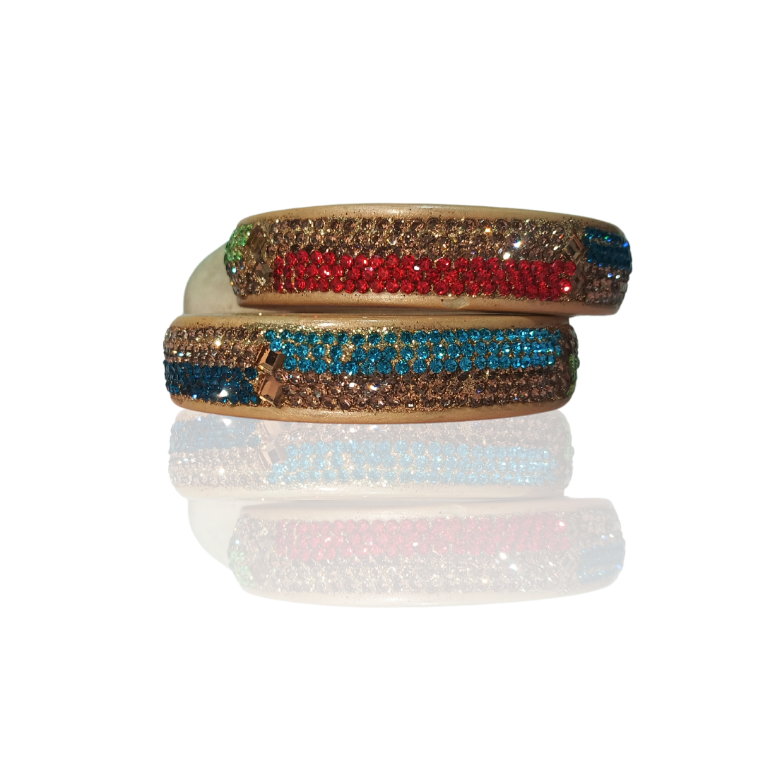 Set of 2 traditional lakh bangles with multicolor and golden stone detailing, crafted to perfection. Ideal for festivals, functions, parties, weddings-perfect for Girls & Women.