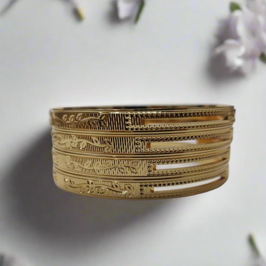 Elegant set of 4 Gold Platted floral wine Brass Bangles gold-plated bangles with intricate cutouts and designs. Perfect for festivals, functions, parties, wedding perfect for girls & women.