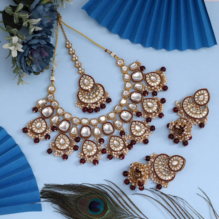 - Color: Maroon | Stone: Kundan & Imitation Pearl