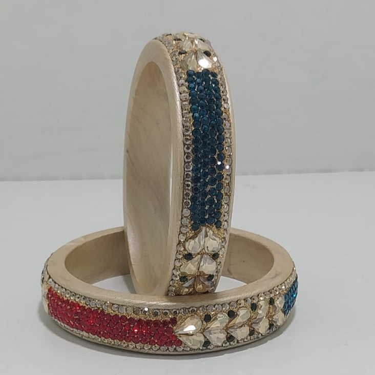 Multi Kundan Topaz fitted kada plated latest design Rajasthani bangles set of 2 for Indian traditional fashion, partywear. Perfect for Women & Girls, Festivals, Traditional Functions, Wedding.