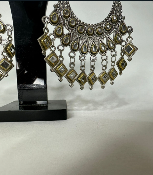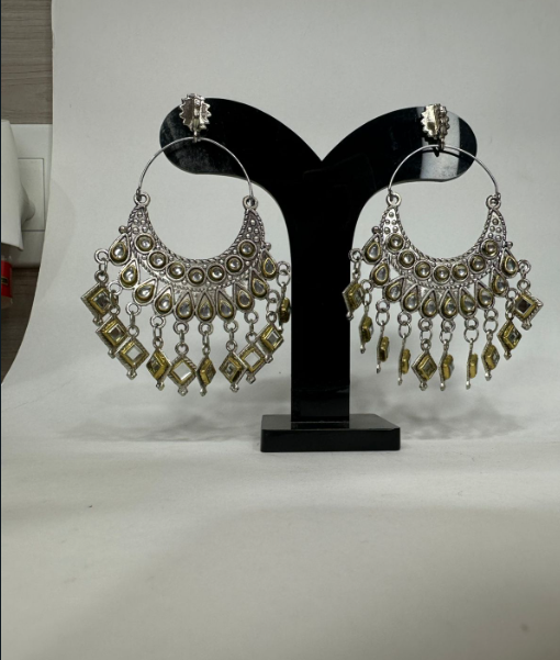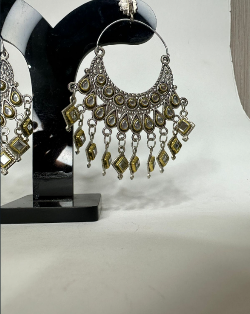 Introducing golden finishing chandbalis featuring mesmerizing choki stones, teardrop stones, and a swan design with detailed silver oxidized and gold-finished danglings, perfect for special occasions at ease. Occasions like festivals, functions, parties, weddings perfect for girls & women.