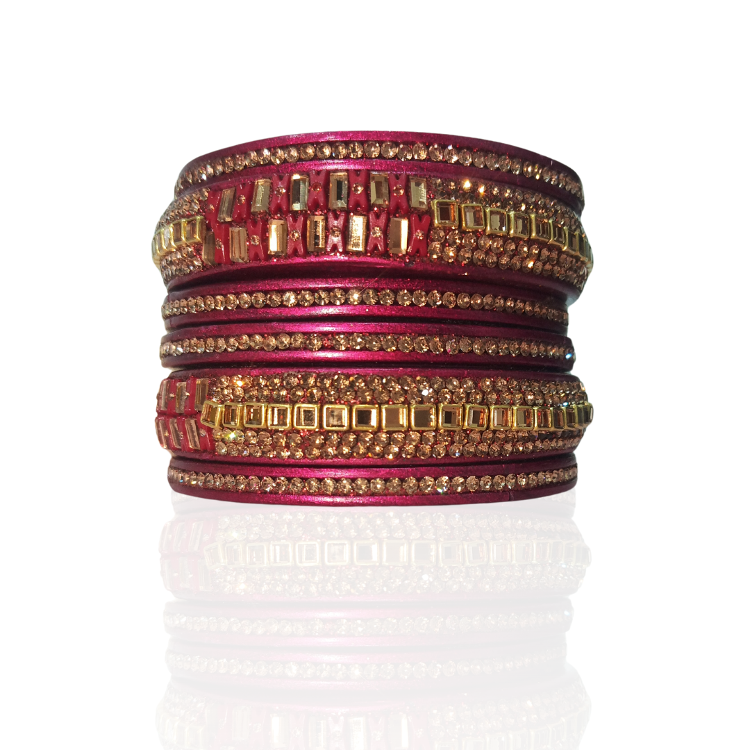 Gaon ka Saman Introducing a luxurious set of 6 lakh bangles, beautifully crafted with rectangular crystal stones and gold zircon accents. These bangles highlight the exquisite artistry of skilled artisans, combining classic charm with a modern twist. Made with high-quality lakh material, they add sparkle and elegance, making them a perfect addition to any traditional attire.