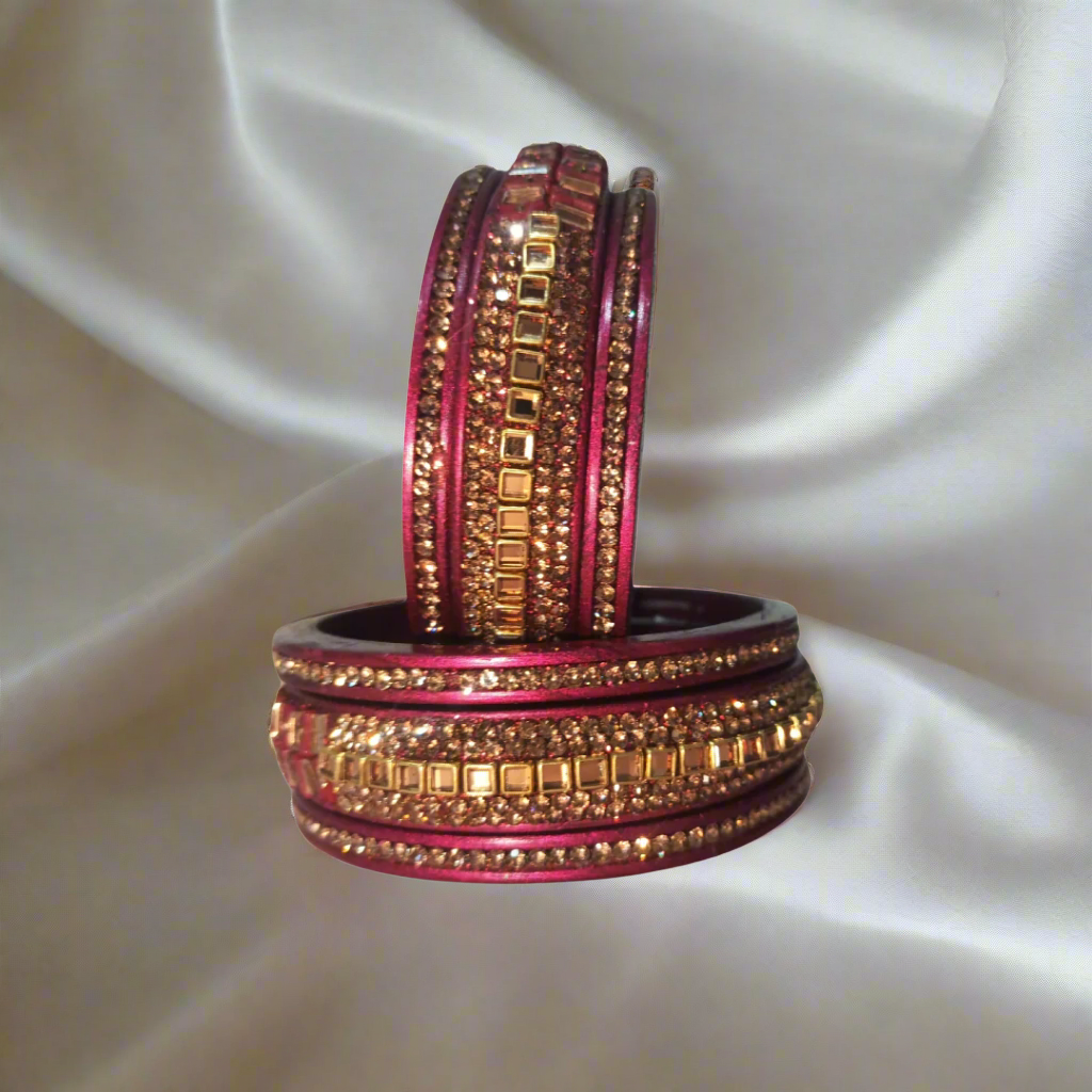 Set of 6 lakh bangles with crystal stones and gold zircon detailing, exuding elegance and sophistication. Ideal for festivals, functions, parties, weddings—perfect for Girls & Women.