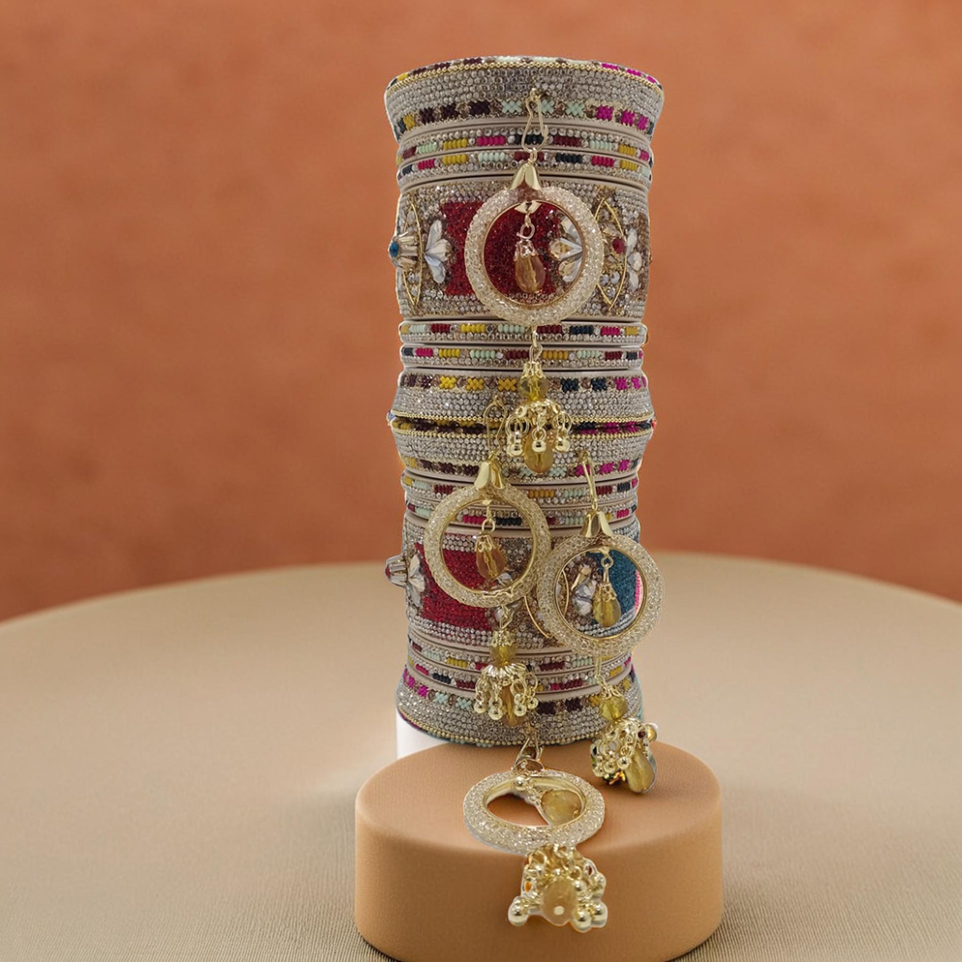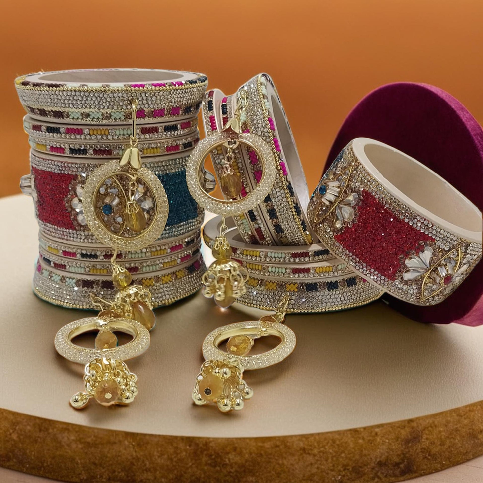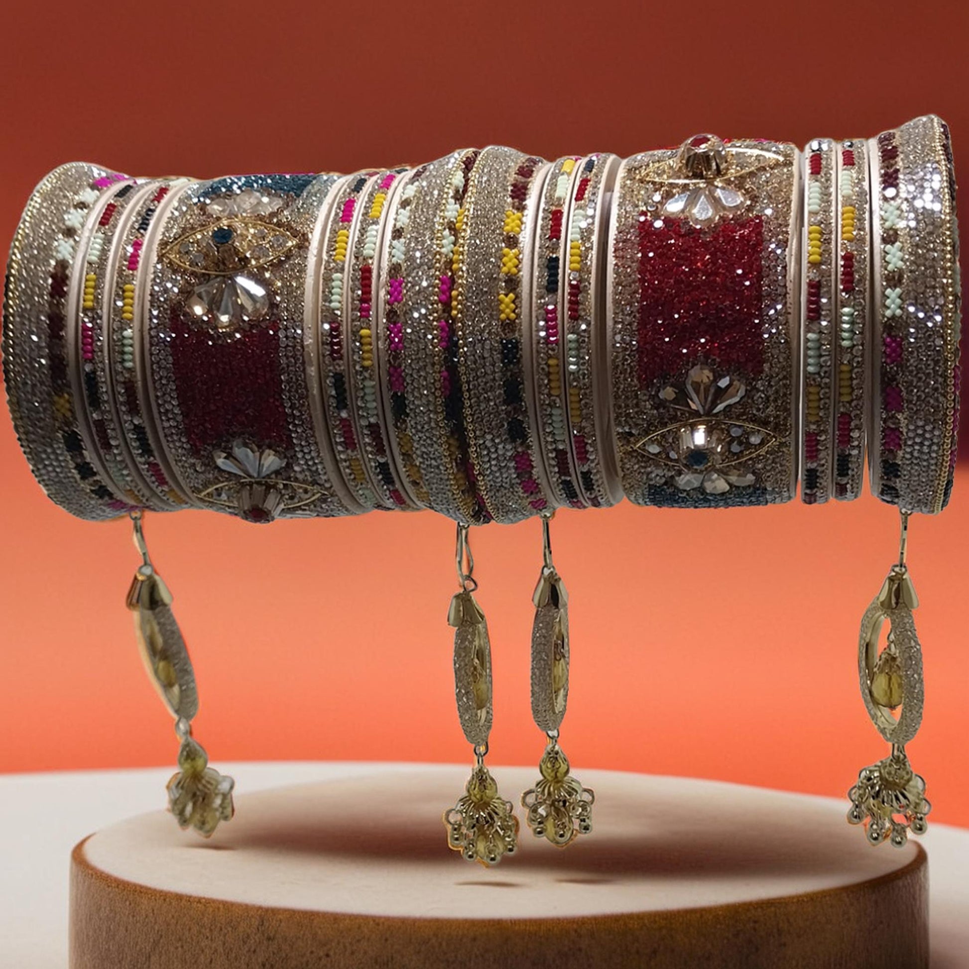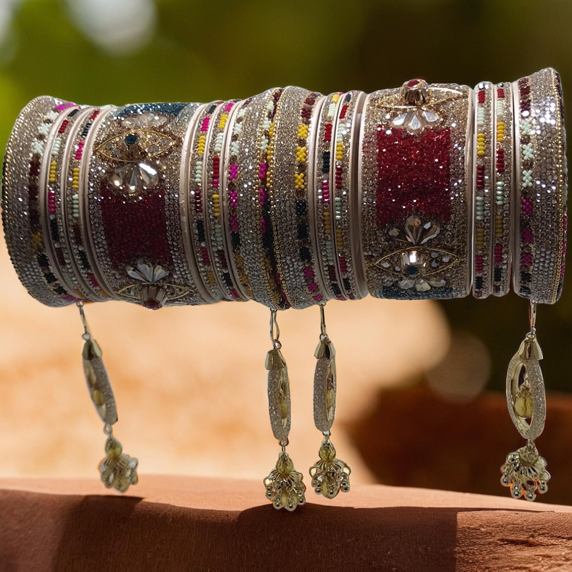 Handcrafted royal bridal Lac bangles set with dazzling Kundan work, intricate bead detailing, and elegant hanging ornaments. A perfect blend of tradition and style for festivals, functions, parties, and weddings.