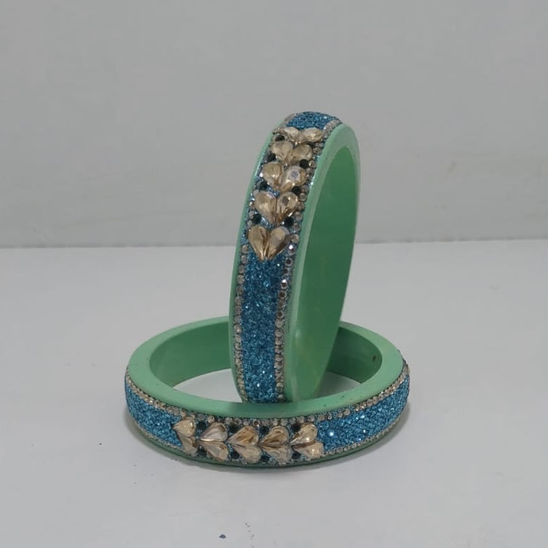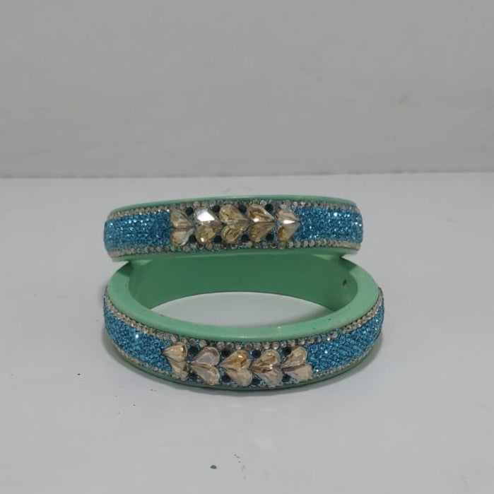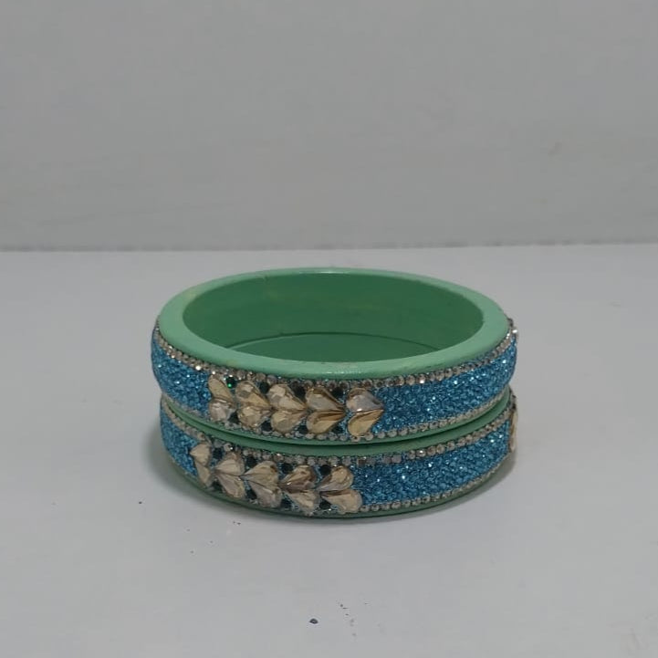 Sky Blue Colour Lakh Bangles set of 2, golden stones and mirrors, enhanced by twin Sky Blue Colour-stones, ethnic bangles for women and girls,