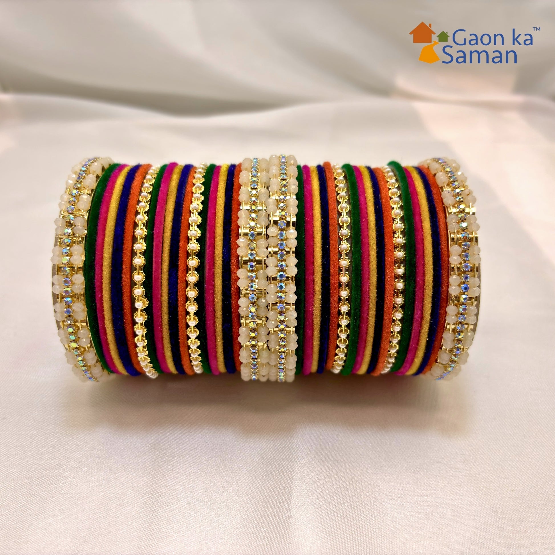 Multi Chura Set of 36, Velvet bangles with outer golden bangles with American diamonds, ethnic bangles for women and girls,