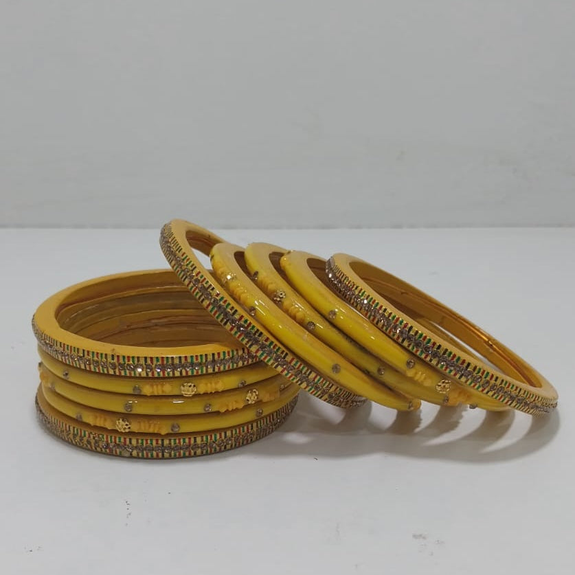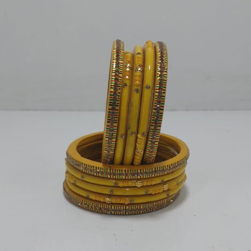 Elegant set of 8 lakh bangles, perfect for pairing with Kada bangles. Available in Yellow colors, ideal for occasions like festivals, functions, parties, and weddings. Suitable for girls and women.
